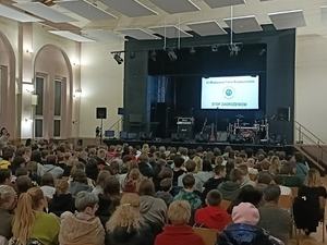 We wtorek policjantka kamiennogórskiej jednostki wzięła udział w podsumowaniu projektu „STOP zagrożeniom – VII Młodzieżowe Forum Bezpieczeństwa” organizowanym przez Gminę Kamienna Góra. W czasie projektu funkcjonariuszka prowadziła zajęcia z młodzieżą w klasach I–VIII czterech szkół podstawowych w Pisarzowicach, Krzeszowie, Ptaszkowie oraz Szarocinie dotyczące hejtu, agresji, a także roli świadka przemocy.