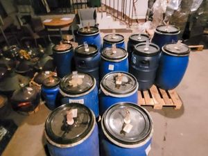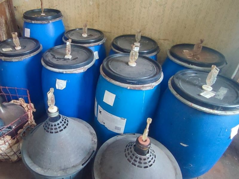 Ponadto funkcjonariusze zabezpieczyli również trzydzieści 100-litrowych plastikowych beczek oraz szklanych gąsiorów wypełnionych zacierem, z którego miał powstać alkohol. Właścicielem posesji był 72-letni mężczyzna, który przyznał się do produkcji alkoholu.