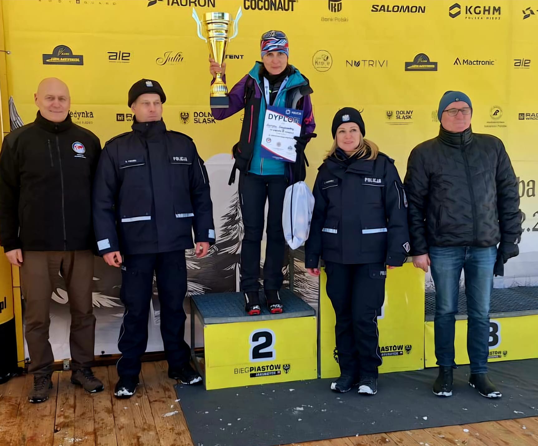 Podium dla Krystyny Grzybowskiej - pracownika cywilnego Komendy Powiatowej Policji w Kamiennej Górze, która swoim doskonałym występem na 50-tym Biegu Piastów na Polanie Jakuszyckiej zawstydziła wielu. Serdeczne gratulacje!