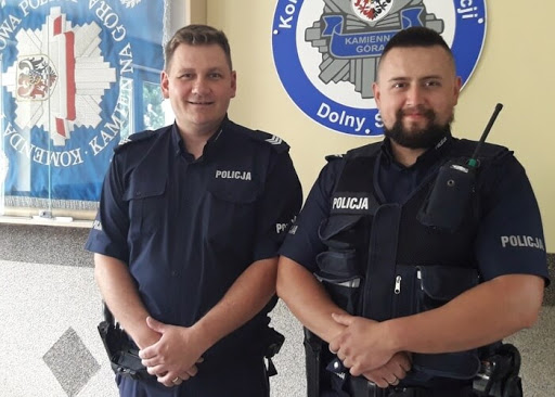 Podczas pożaru kamienicy przy ul. Fabrycznej w Kamiennej Górze, do jakiego doszło w dniu wczorajszym ok. godz. 21:00, na miejscu zdarzenia jako pierwsi zjawili się policjanci z Ogniwa Patrolowo - Interwencyjnego kamiennogórskiej policji sierż. szt. Adam John i mł. asp. Marcin Nieć. To oni jako pierwsi przystąpili do rozpoznania. Udając się na poddasze dostrzegli rozprzestrzeniające się płomienie, które uniemożliwiały dostanie się do mieszkań, w których znajdowali się dwaj mężczyźni. Postanowili przystąpić do ewakuacji mieszkańców kamienicy. Sierż.szt. Adam John, mimo bardzo niebezpiecznej sytuacji i ogromnego zadymienia zaryzykował i z sukcesem wyniósł na własnych barkach z płonącego mieszkania jednego z poszkodowanych mężczyzn – najprawdopodobniej sprawcę pożaru. Obaj policjantom w wyniku tych działań musiała zostać udzielona pomoc medyczna. Na szczęście nic poważnego im się nie stało.