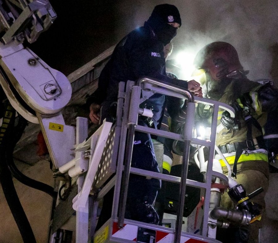 Policjanci pomagali w ewakuacji mieszkańców płonącego budynku